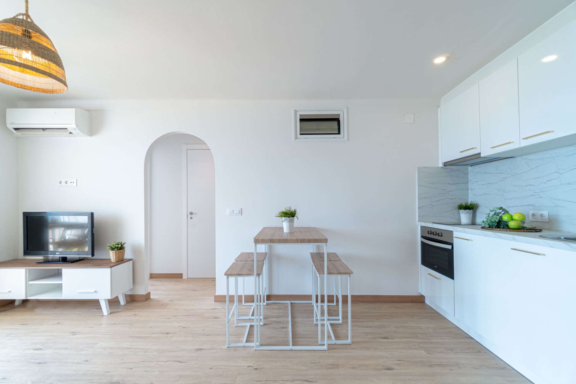 Daarnaast is het appartement voorzien van airconditioning en verwarming, waardoor het het hele jaar door aangenaam verblijven is. Het wordt volledig gemeubileerd opgeleverd en is gelegen in een gebouw met lift, wat het extra toegankelijk maakt.