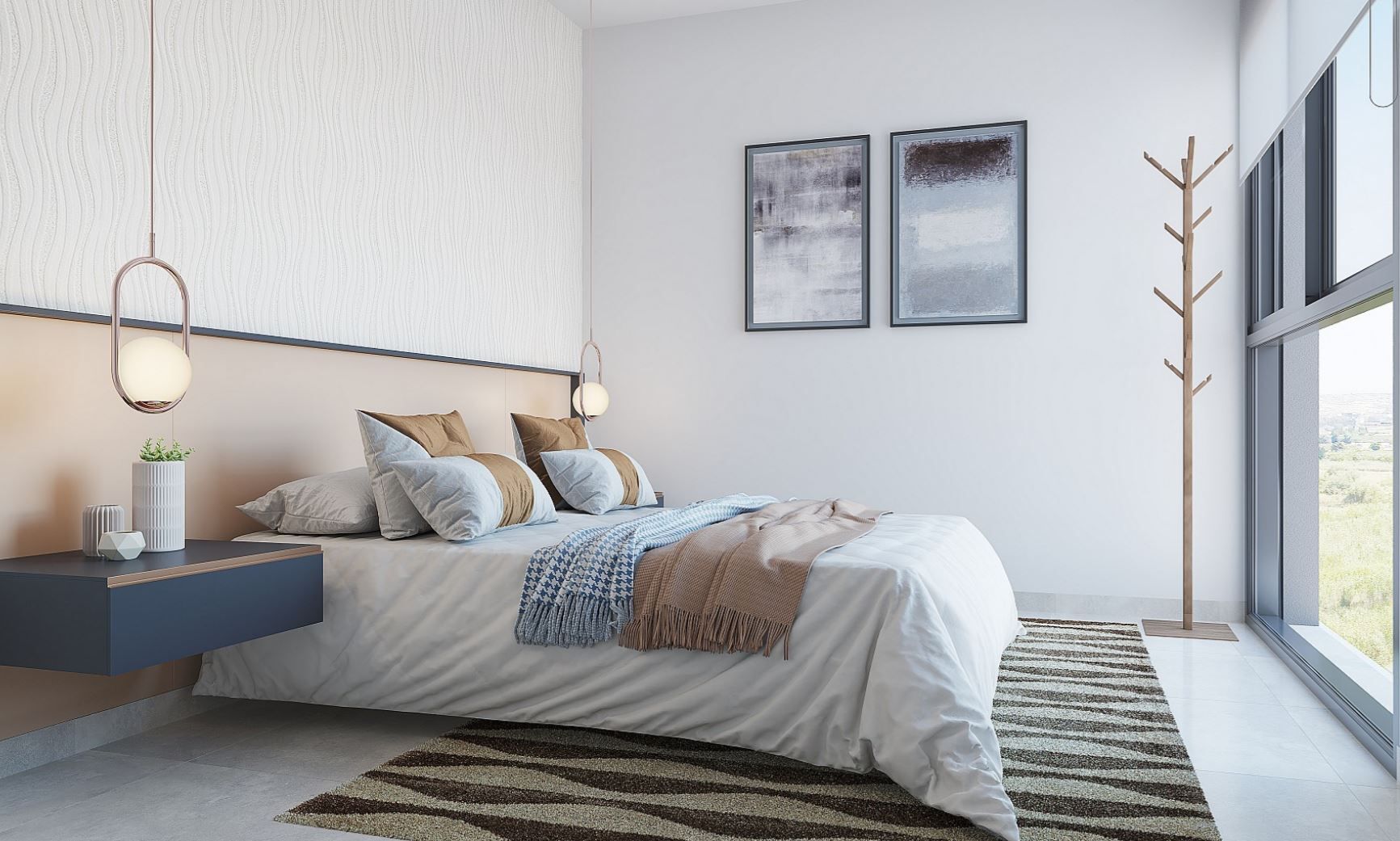 De masterbedroom, is ruim, met veel kleedruimte en een en-suite badkamer.