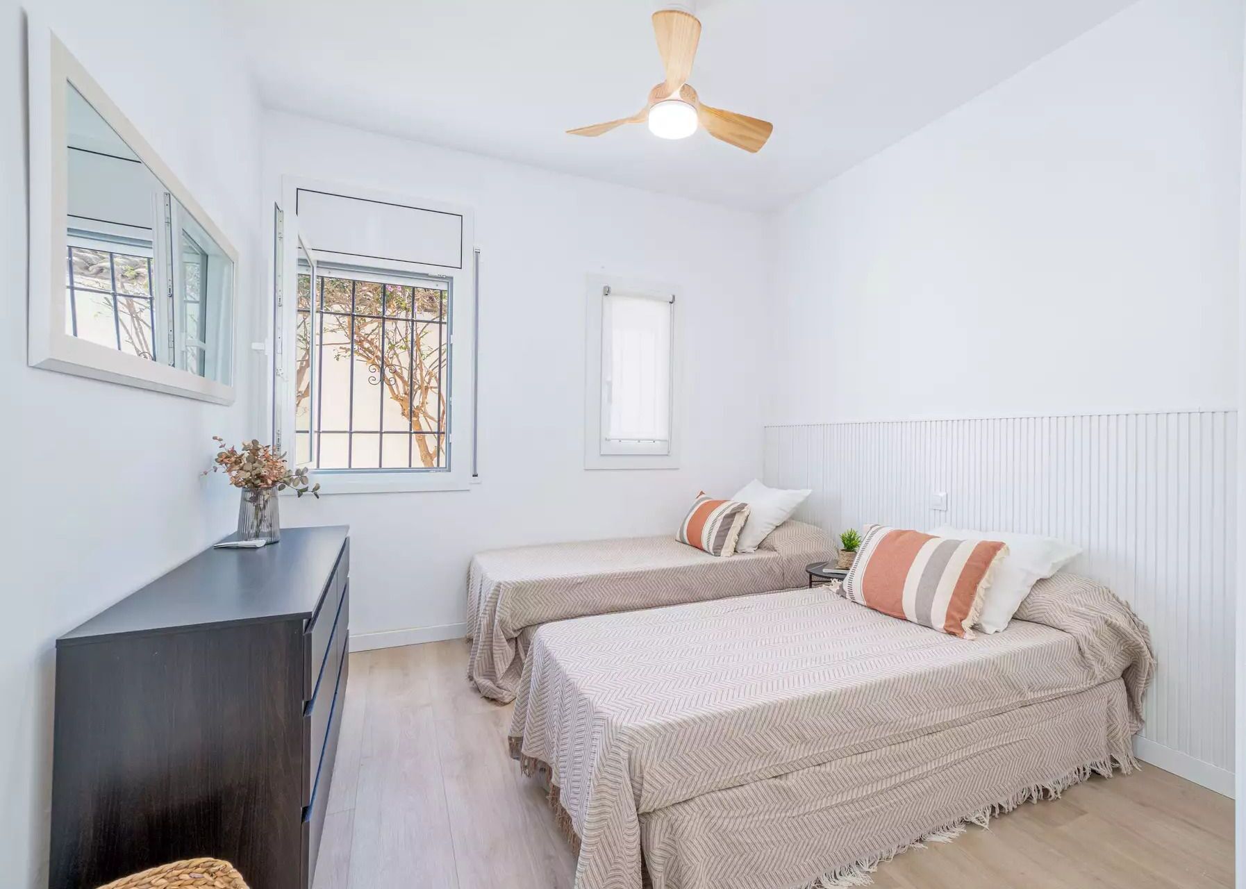 Het beschikt over een ruime woonkamer met eetkamer en open keuken, twee slaapkamers en een complete badkamer. Aan de achterzijde bevindt zich een charmante binnenplaats, zorgvuldig gedecoreerd, ideaal om te genieten van de warme zomernachten.