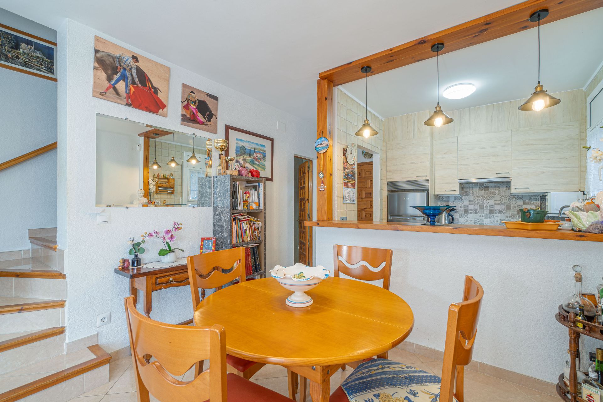Buiten biedt de woning meerdere fijne plekken om van het mediterrane klimaat te genieten. Onder de charmante veranda kunt u beschut zitten, terwijl het ruime terras met barbecue ideaal is voor lange avonden met familie en vrienden. De woning beschikt bovendien over een privégarage van circa 22 m².