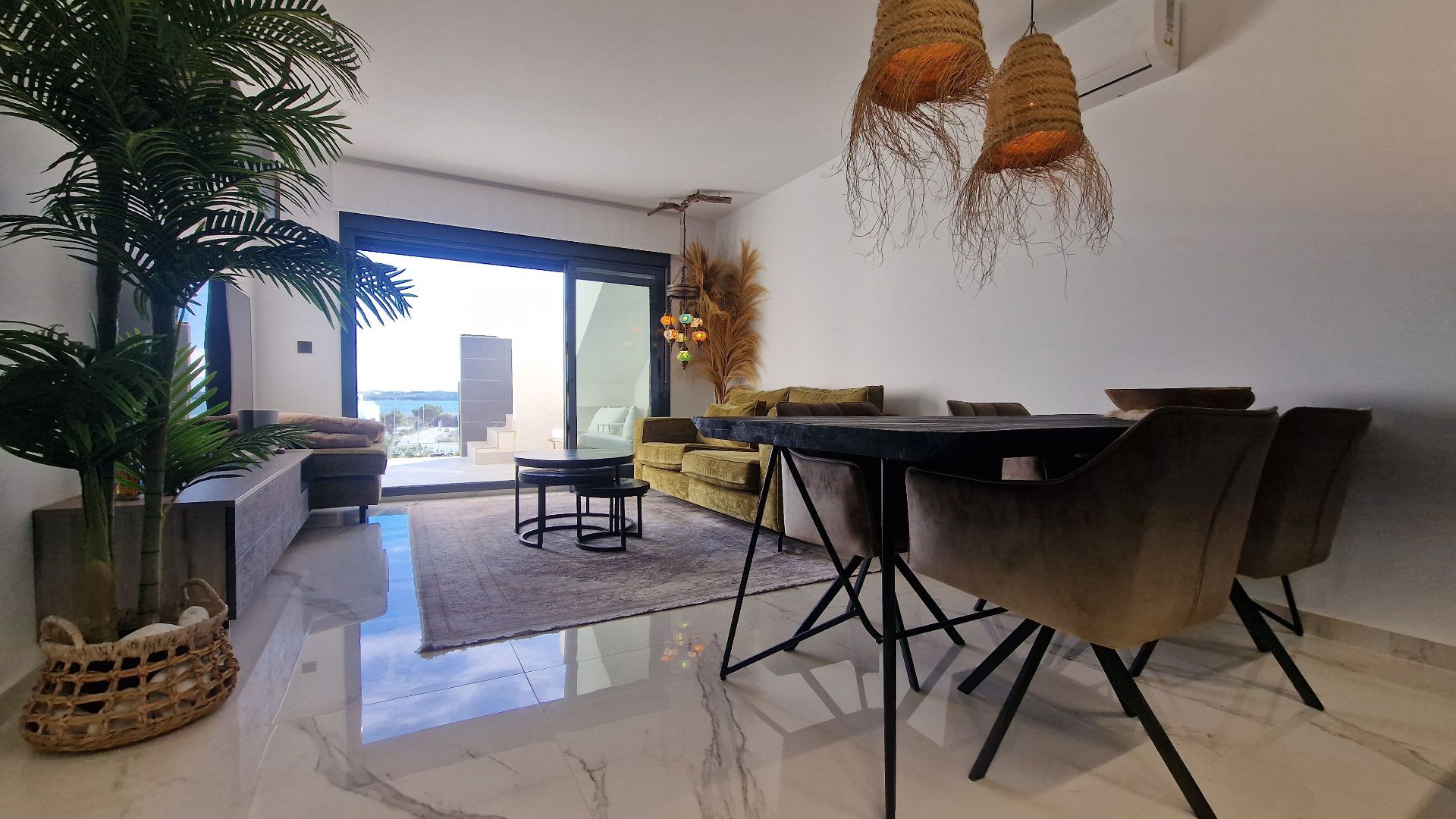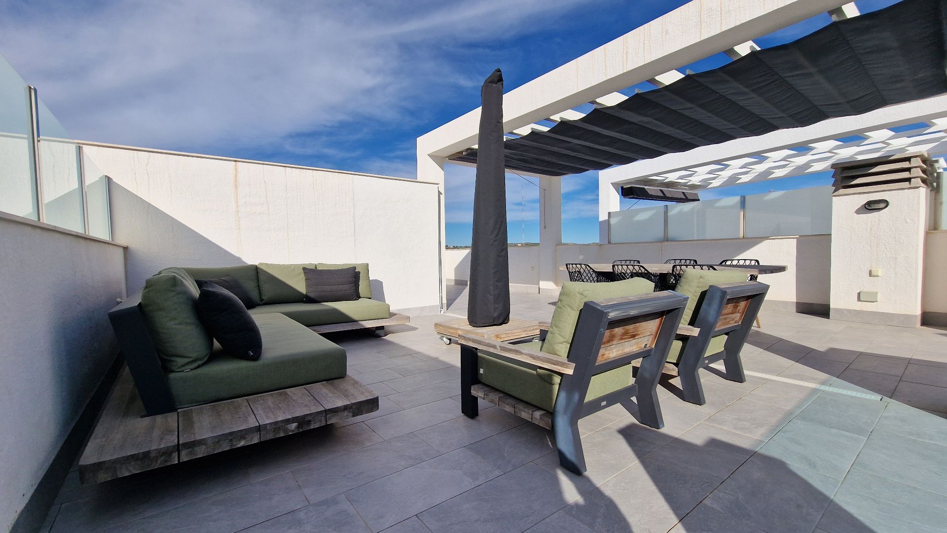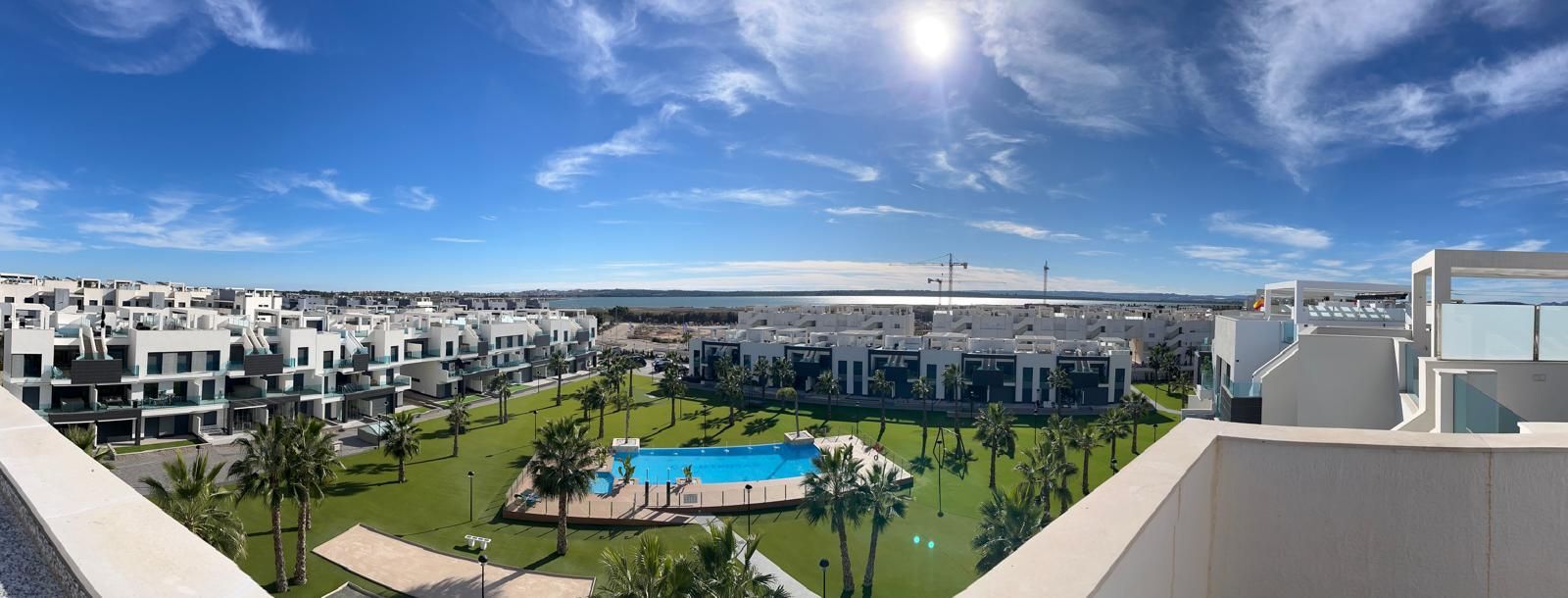 In het geliefde El Raso, onderdeel van Guardamar del Segura, ligt dit moderne en recent gebouwde penthouse uit 2021. Met een woonoppervlak van 87 m², een royaal dakterras van 67 m² en een schitterend uitzicht over de zoutmeren van La Mata en Torrevieja biedt deze woning alles voor wie comfortabel, stijlvol en zonnig wil wonen aan de Costa Blanca.