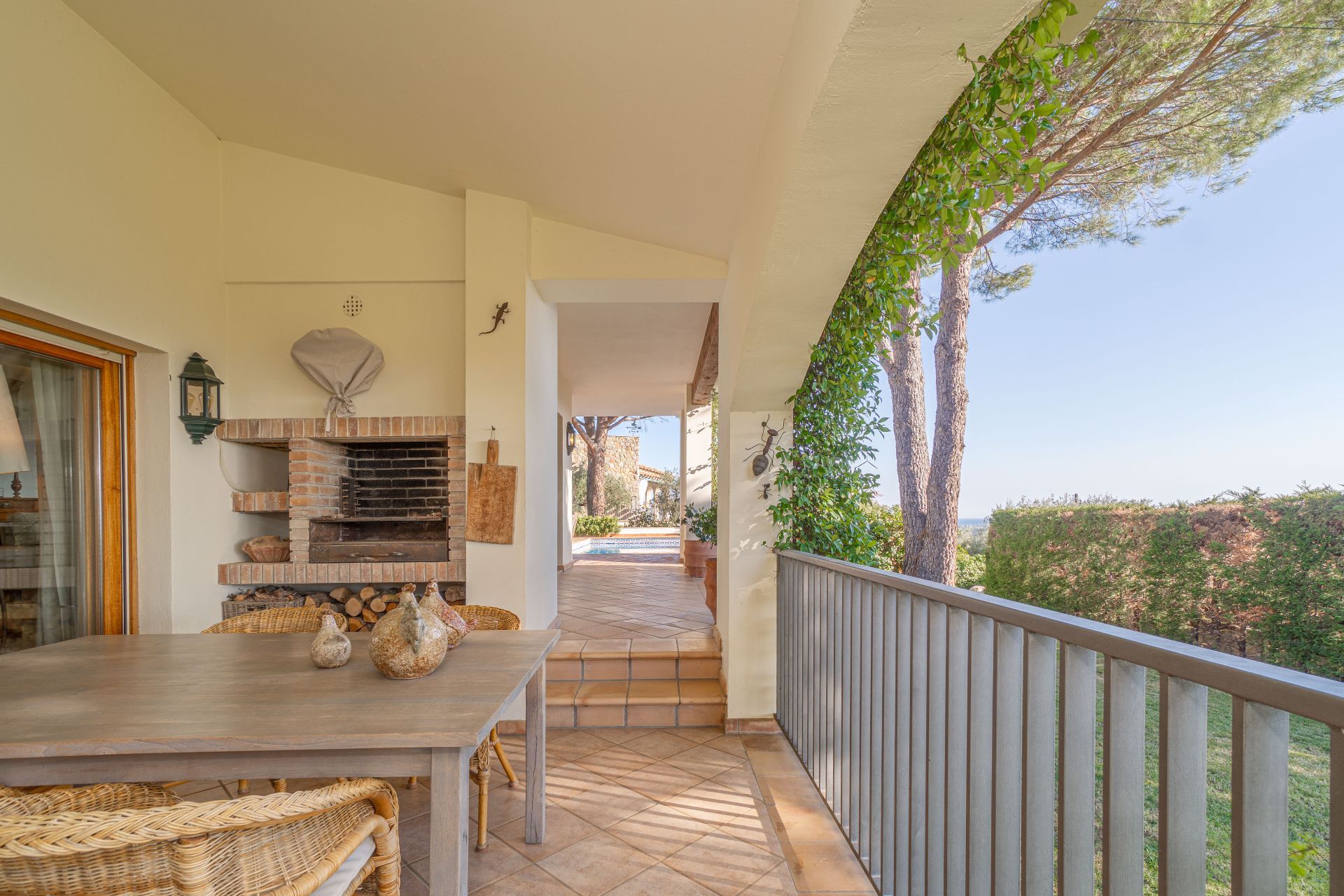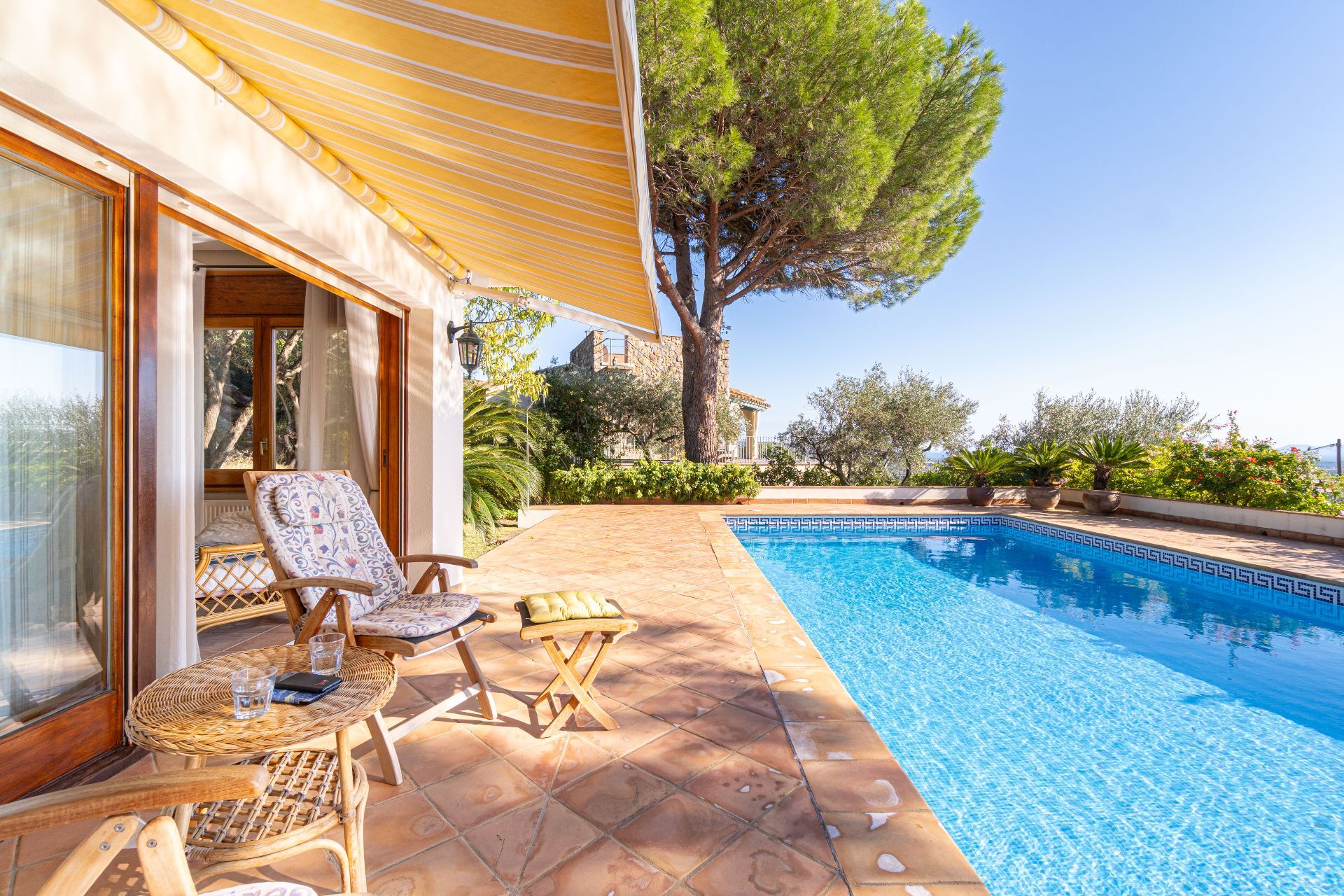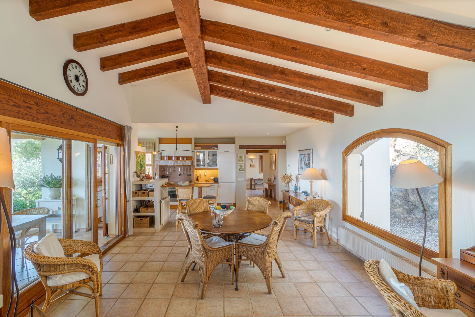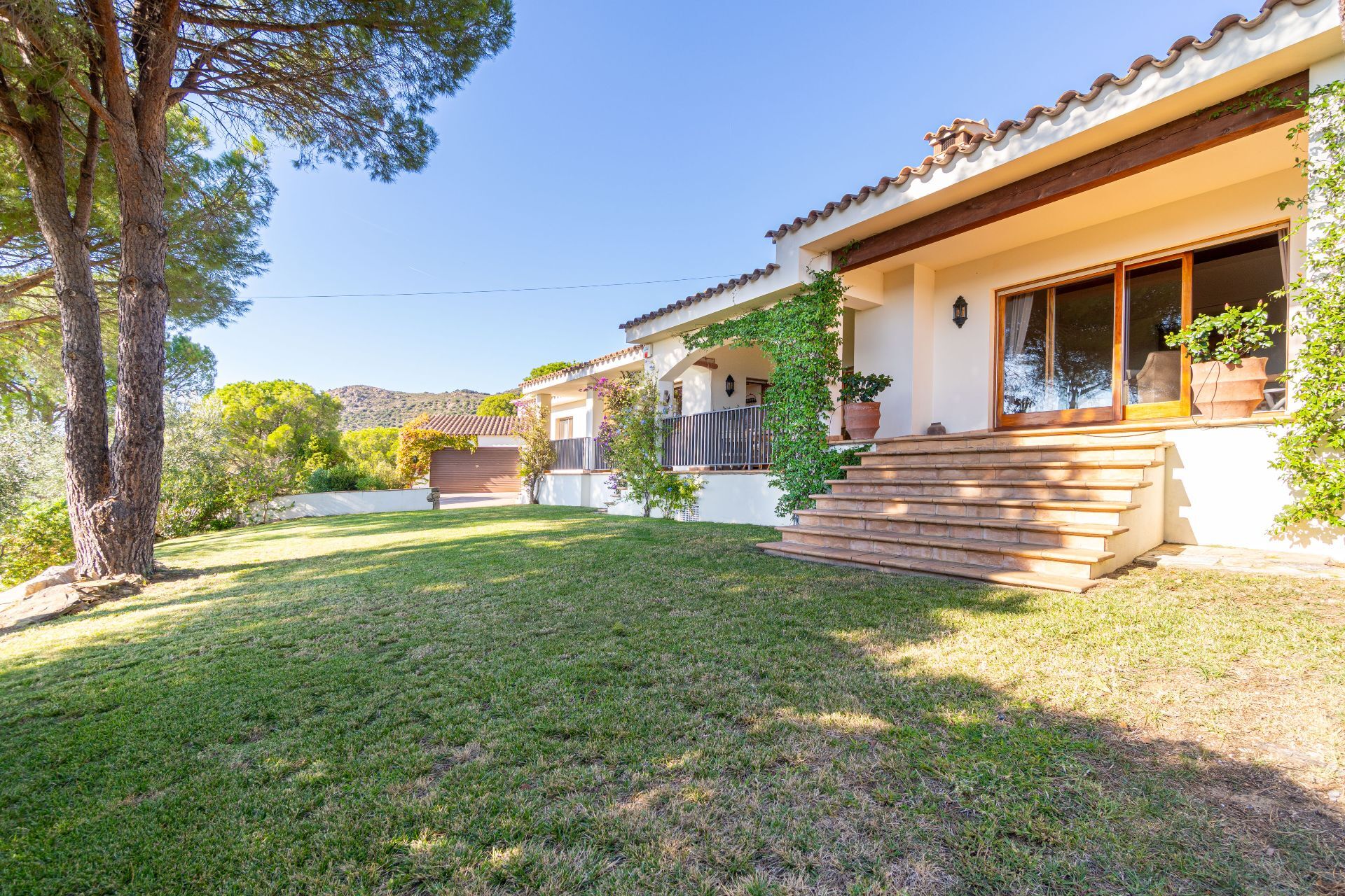 De tuin is een ware oase van rust en groen. Grote, volgroeide struiken omzomen het perceel en het zwembad, waardoor er een intieme en natuurlijke sfeer ontstaat. Aan de ene kant geniet je van uitzicht op de heuvels en de uitlopers van de Pyreneeën, terwijl je aan de andere kant uitkijkt over de schitterende baai van Roses.