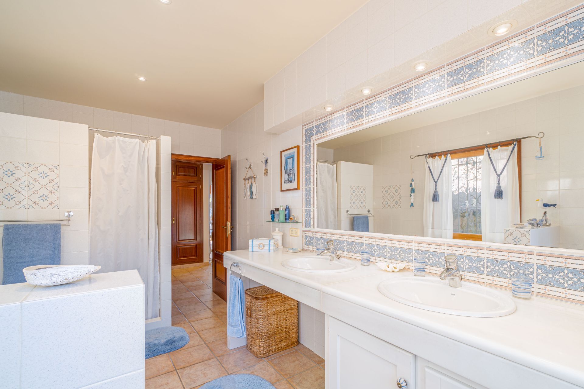 Aan één zijde van de villa bevindt zich de royale mastersuite, met slaapkamer, kleedruimte en een ruime badkamer. Vanuit de slaapkamer heb je een prachtig uitzicht over de tuin en het zwembad. Aan de andere kant van het huis liggen nog twee slaapkamers die een tweede badkamer delen. De stijlvolle hal, met uitzicht op de rotswand, beschikt over een gastentoilet. Daarnaast zijn er een handige voorraadkast (de ‘wijkelder’), en een aparte wasruimte.