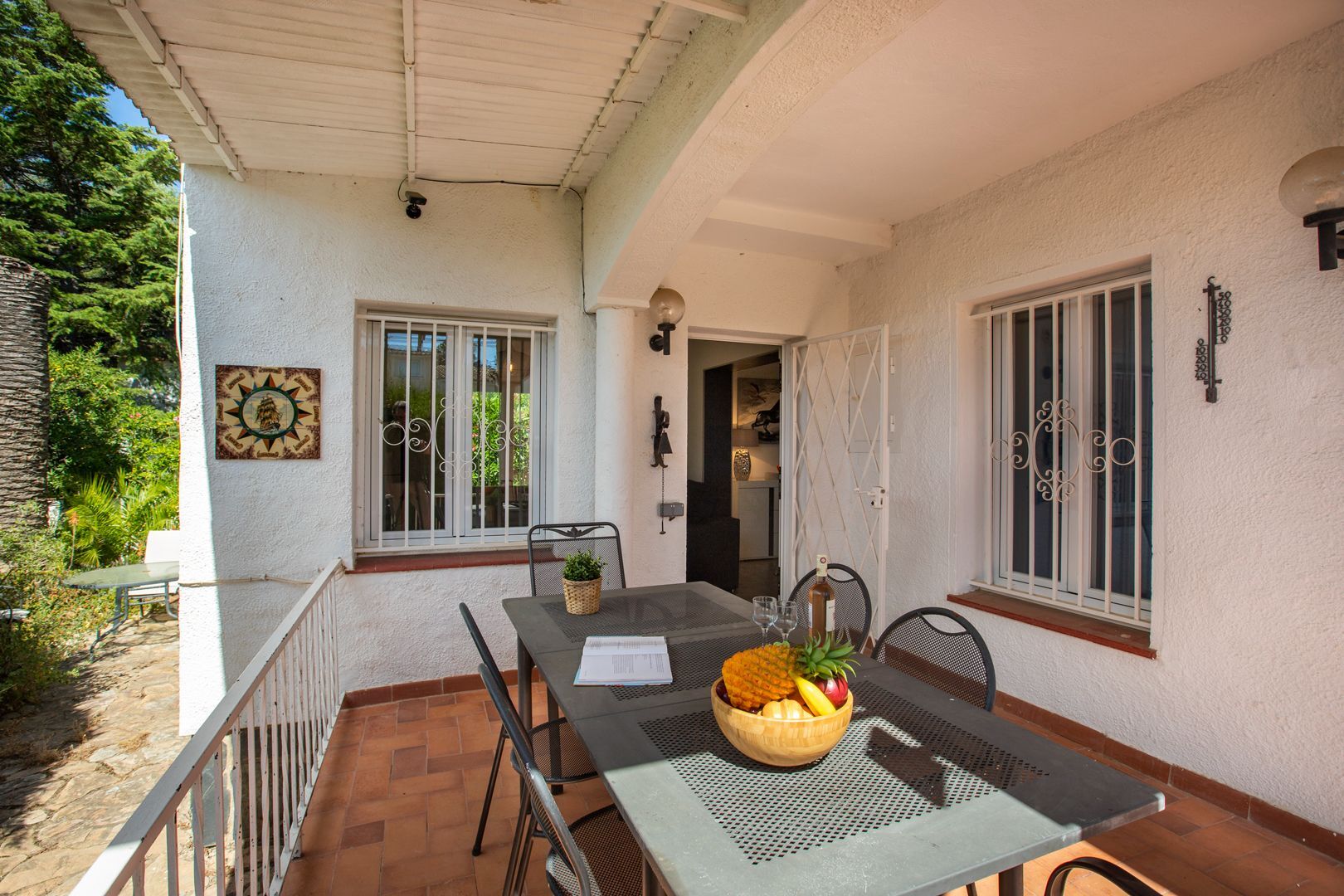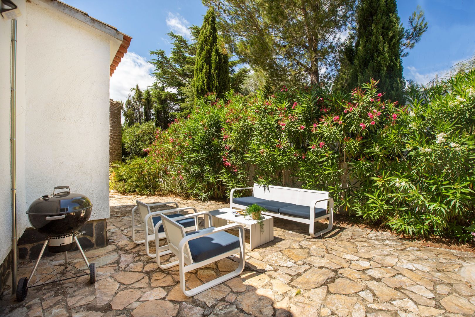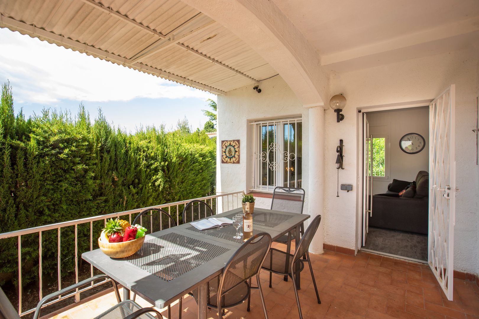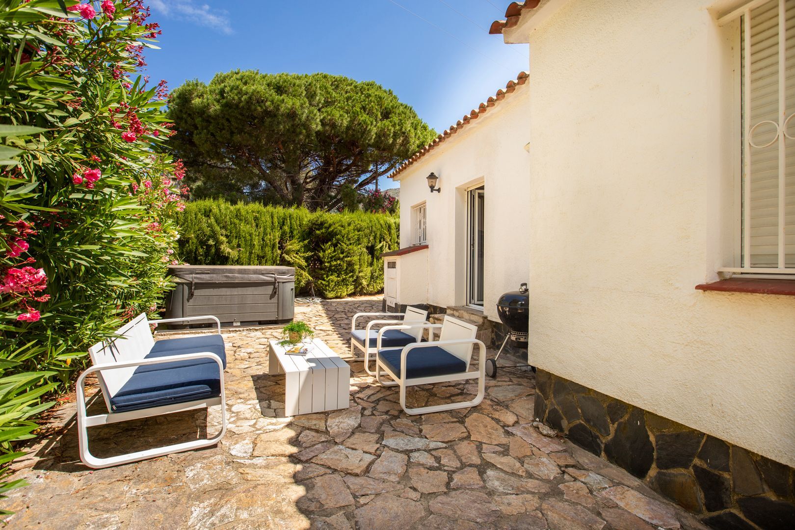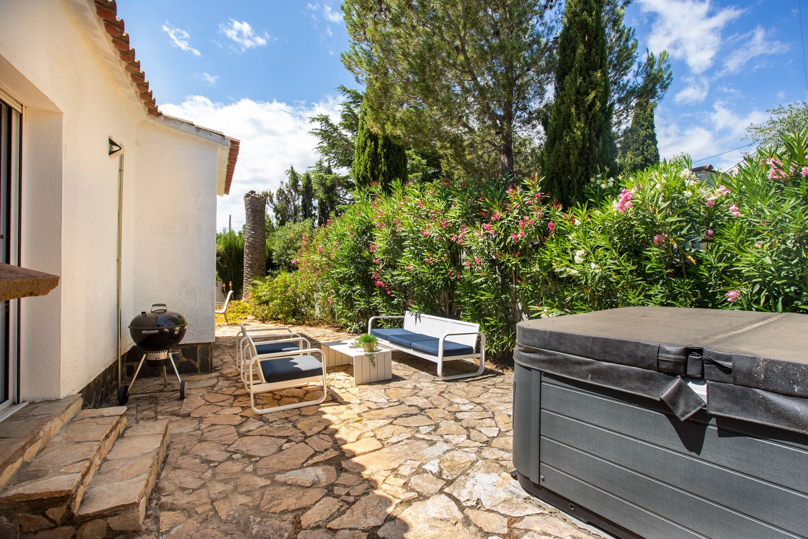 (ref 1208) Villa met jacuzzi in de tuin in rustige buitenwijk van Roses. 5 km van het strand, 3 slaapkamers, 1 badkamer en een gastentoilet.